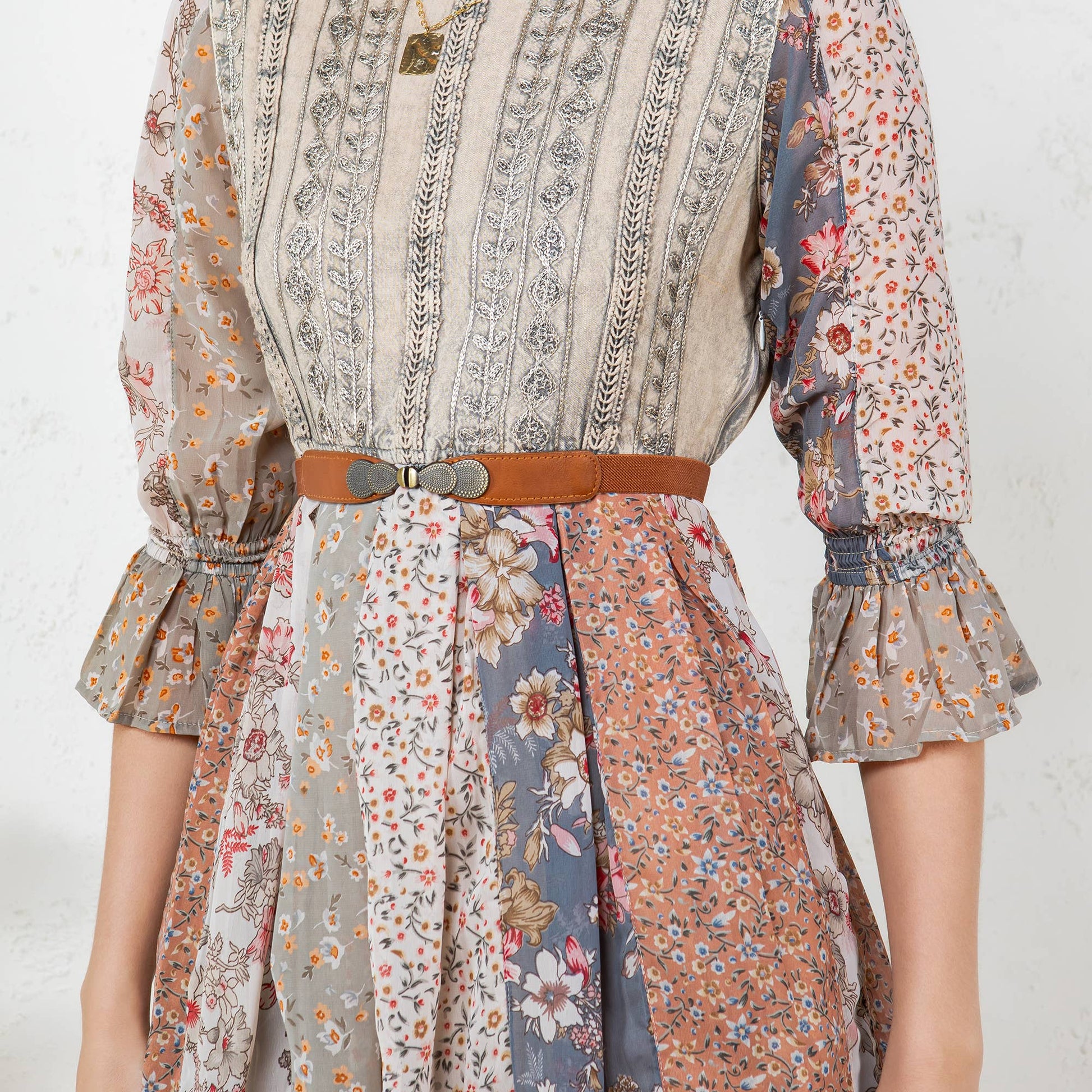 • Details: Babydoll round neck mid-length dress with printed patchwork, blending boho and Western style for a stylish, lightweight, breathable summer dress